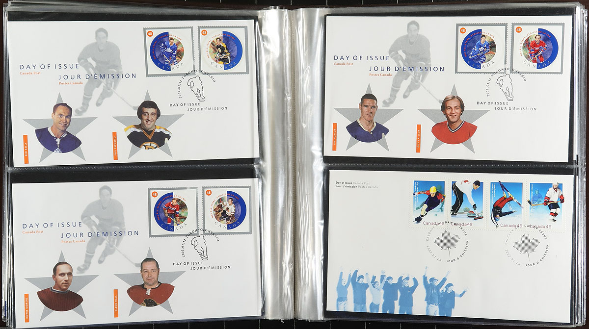 First Day Covers. Clean collection of Canada first day covers, 1987-2004, containing roughly 450 covers, well organized by year in 5 cover albums. We note singles, sets, souvenir sheet, coils, booklet issues, and high denomination frankings. A nice clean lot for collectors and dealers alike. Estimate =