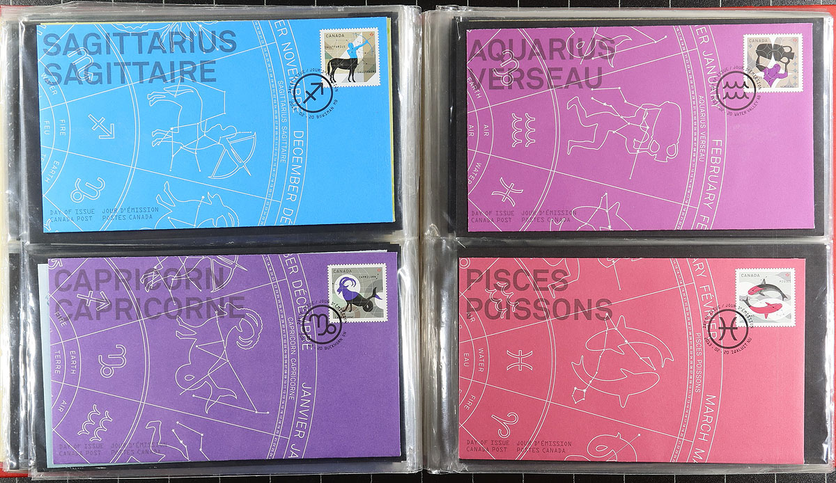 First Day Covers. Lovely collection of Canada first day covers, 2005-2017, containing roughly 325 covers, well organized by year in 4 cover albums. We note singles, sets, souvenir sheet, coils, and high denomination frankings. A nice clean lot for collectors and dealers alike. Estimate =