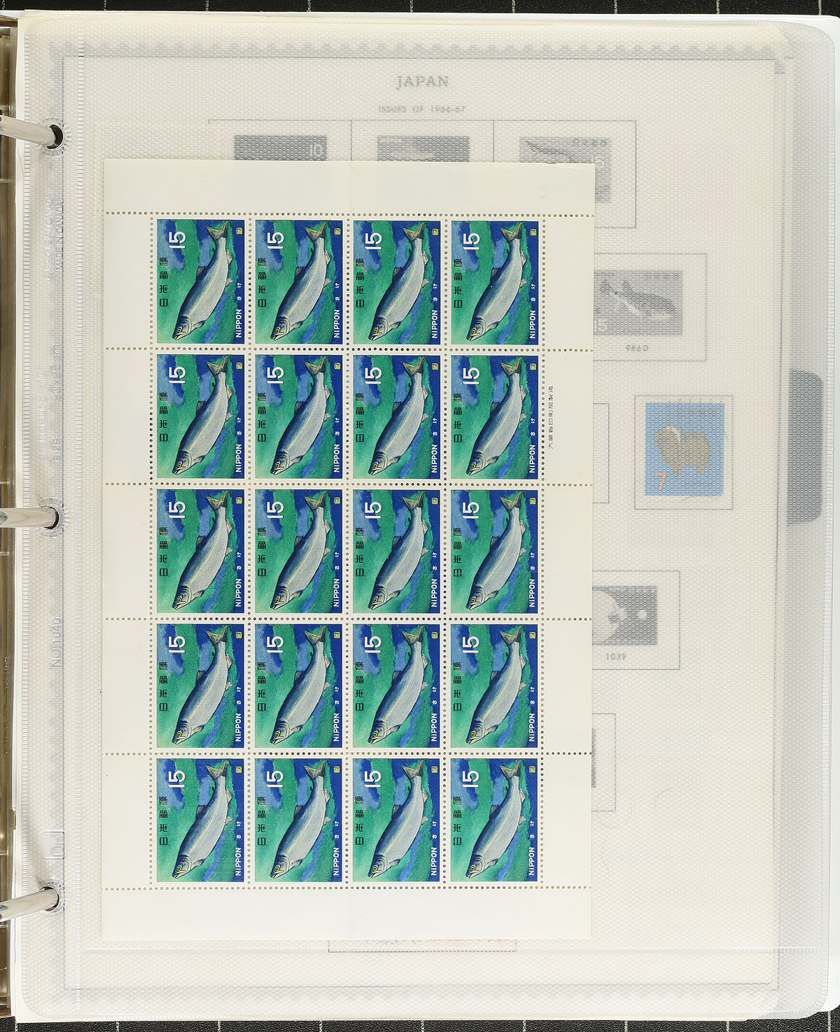 Collection of mint and used Japan, 1880's-1990's, containing a few thousand stamps, in roughly 100 well described pages, housed in 2 binders. The collection begins with primarily used issues up to 1940, and continues with a mixture of mint and used material, with some issues having a mint and a used example, along with a selection of souvenir sheets. A spot check revealed a few items cataloguing $10 and up, including Scott #519 (mh and used, c.v. $75 total), leaving better finds for the dedicated collector. Postmark interest includes bridge and other town postmark types. A nice opportunity for topical collectors as we note several subjects including nature, fish, flowers, butterflies, insects, and much more. Our photos show a small sampling. Estimate =