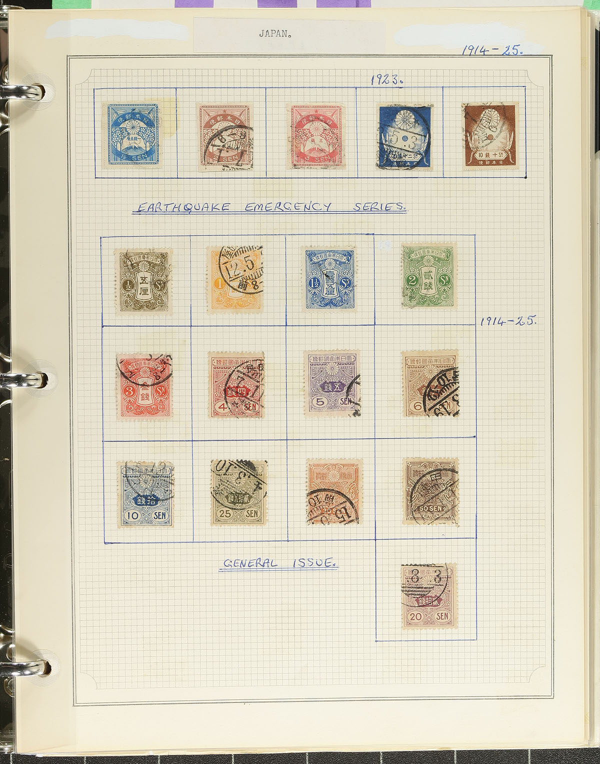 Collection of mint and used Japan, 1880's-1990's, containing a few thousand stamps, in roughly 100 well described pages, housed in 2 binders. The collection begins with primarily used issues up to 1940, and continues with a mixture of mint and used material, with some issues having a mint and a used example, along with a selection of souvenir sheets. A spot check revealed a few items cataloguing $10 and up, including Scott #519 (mh and used, c.v. $75 total), leaving better finds for the dedicated collector. Postmark interest includes bridge and other town postmark types. A nice opportunity for topical collectors as we note several subjects including nature, fish, flowers, butterflies, insects, and much more. Our photos show a small sampling. Estimate =