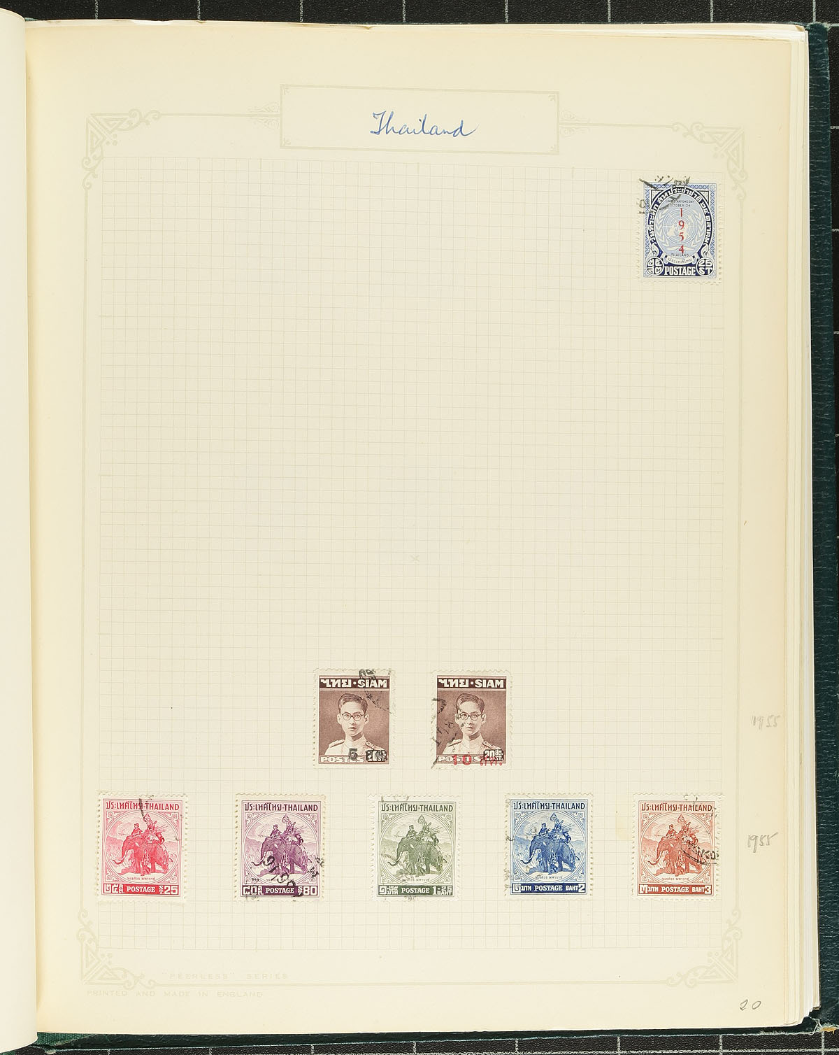 Used, mounted collection on quadrilled pages in a "Simplex" springback binder, with a good range of pre-1980 issues, including many nicer $5-$10 stamps and sometimes even better than that (noting Vietnam #33 and #35). The stamps are cleanly mounted, identified by year and the dealer has done a page-by-page tally of the current catalogue values. Some nice cancels and no obvious faults. The Thailand section is the largest (with a conservative Scott catalogue value of $750.00 and the Vietnam section catalogues $194.00). Total 2024 Scott US$$944.00 =