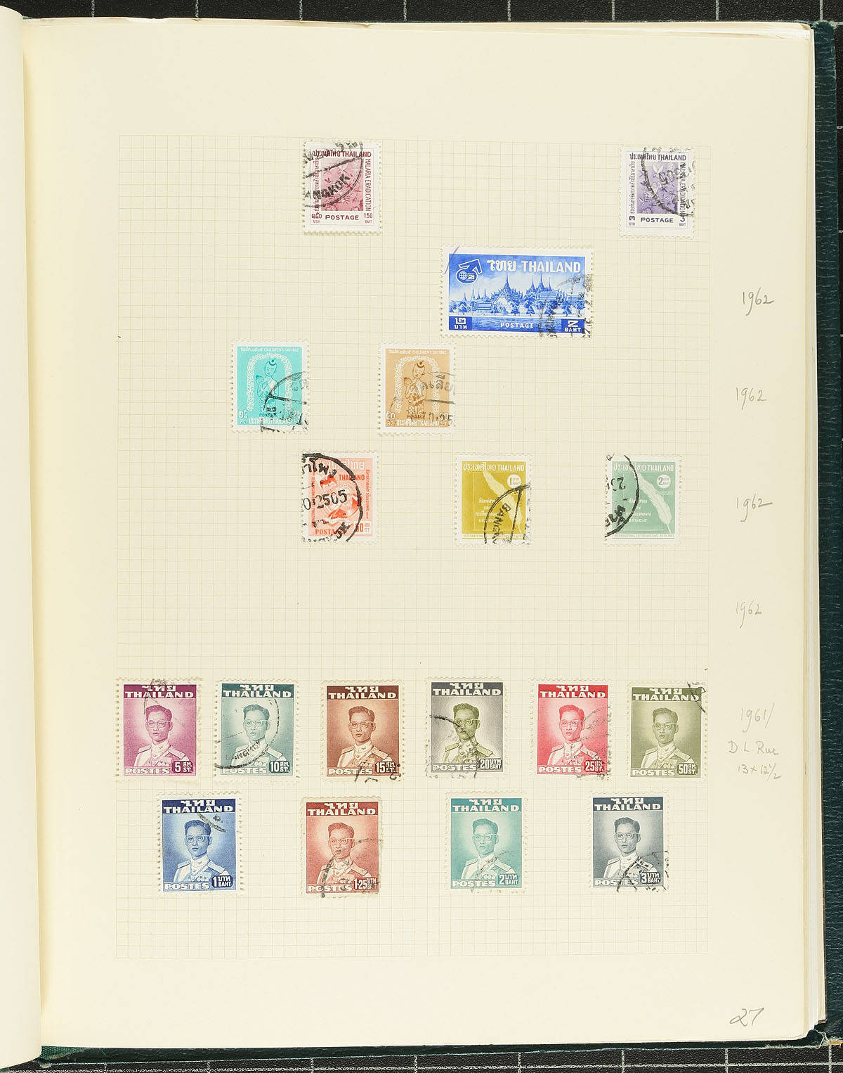 Used, mounted collection on quadrilled pages in a "Simplex" springback binder, with a good range of pre-1980 issues, including many nicer $5-$10 stamps and sometimes even better than that (noting Vietnam #33 and #35). The stamps are cleanly mounted, identified by year and the dealer has done a page-by-page tally of the current catalogue values. Some nice cancels and no obvious faults. The Thailand section is the largest (with a conservative Scott catalogue value of $750.00 and the Vietnam section catalogues $194.00). Total 2024 Scott US$$944.00 =