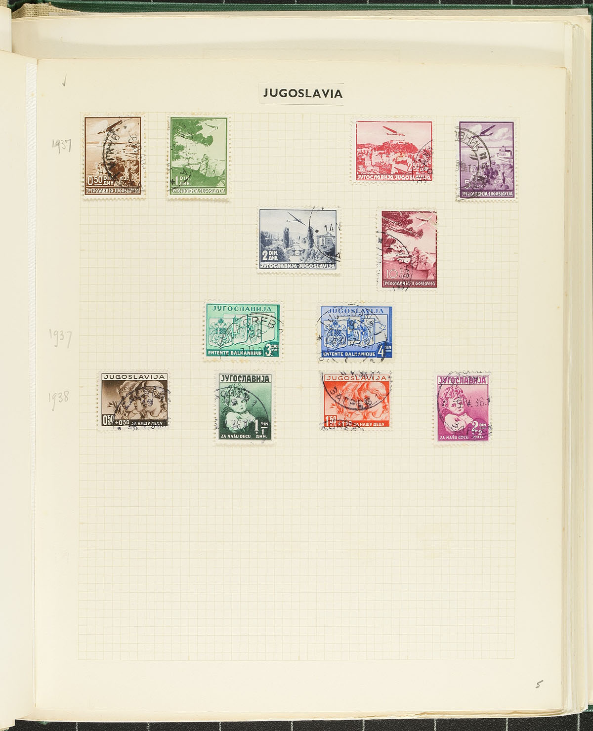 Two mounted collections in a single, green, SG "Tower" springback binder. An extensive used grouping which doesn’t overlap, so everything appears to be different from the post-WWI era up until the late 1970's, with nicer singles throughout. There is fairly decent coverage, with attractive usages and no obvious faults. 2024 Scott US$585.00 =