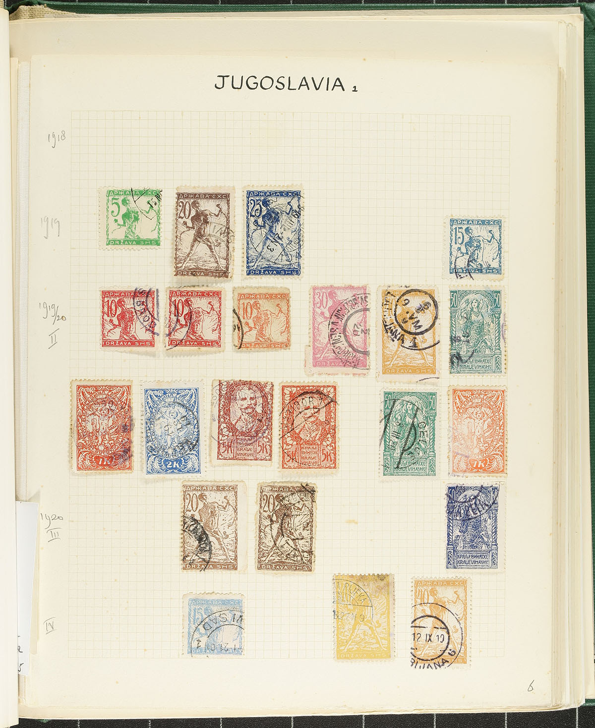 Two mounted collections in a single, green, SG "Tower" springback binder. An extensive used grouping which doesn’t overlap, so everything appears to be different from the post-WWI era up until the late 1970's, with nicer singles throughout. There is fairly decent coverage, with attractive usages and no obvious faults. 2024 Scott US$585.00 =