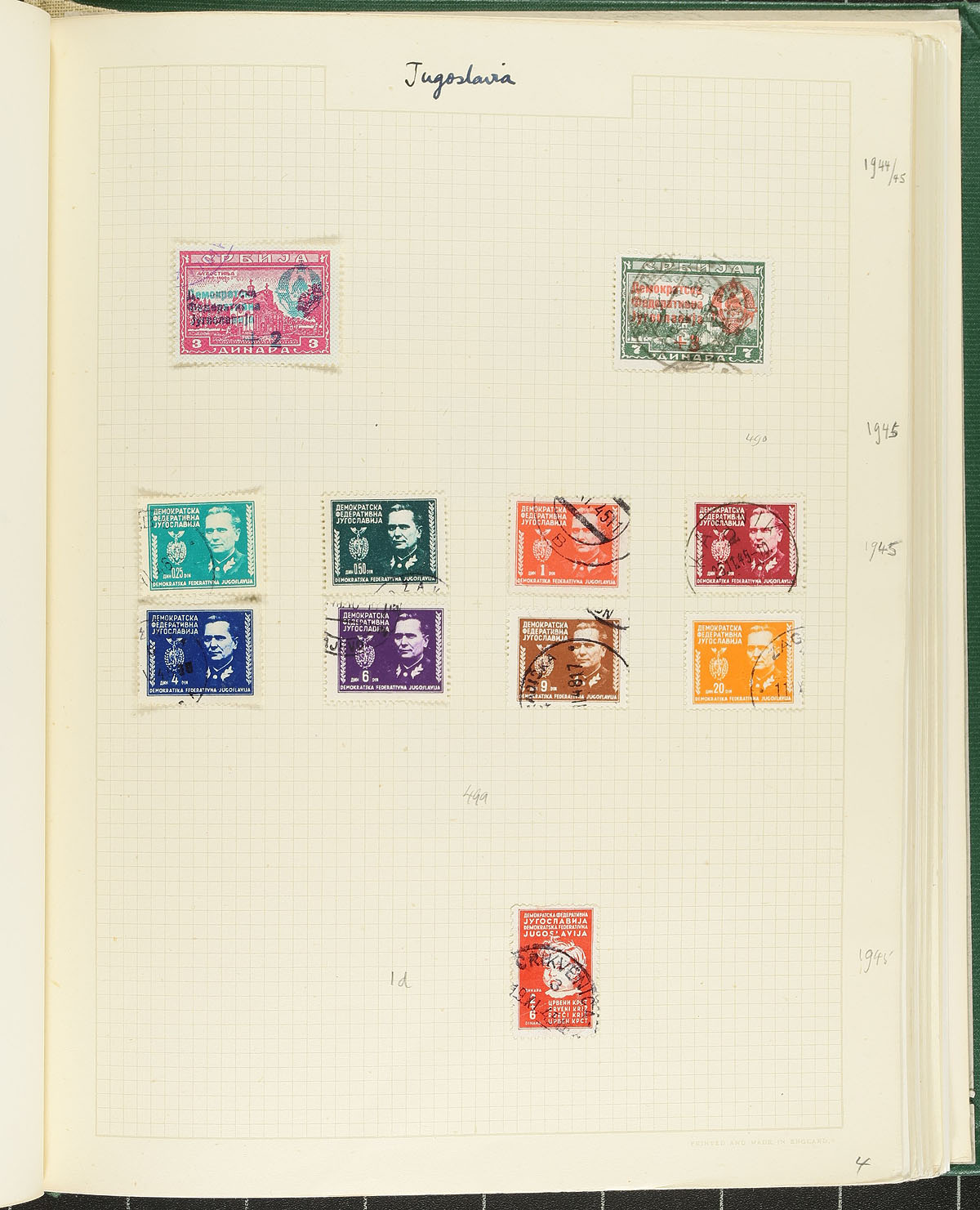 Two mounted collections in a single, green, SG "Tower" springback binder. An extensive used grouping which doesn’t overlap, so everything appears to be different from the post-WWI era up until the late 1970's, with nicer singles throughout. There is fairly decent coverage, with attractive usages and no obvious faults. 2024 Scott US$585.00 =