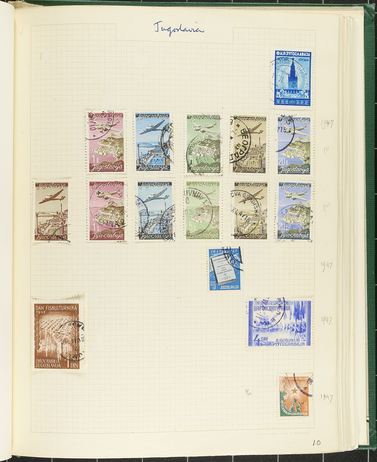 Two mounted collections in a single, green, SG "Tower" springback binder. An extensive used grouping which doesn’t overlap, so everything appears to be different from the post-WWI era up until the late 1970's, with nicer singles throughout. There is fairly decent coverage, with attractive usages and no obvious faults. 2024 Scott US$585.00 =
