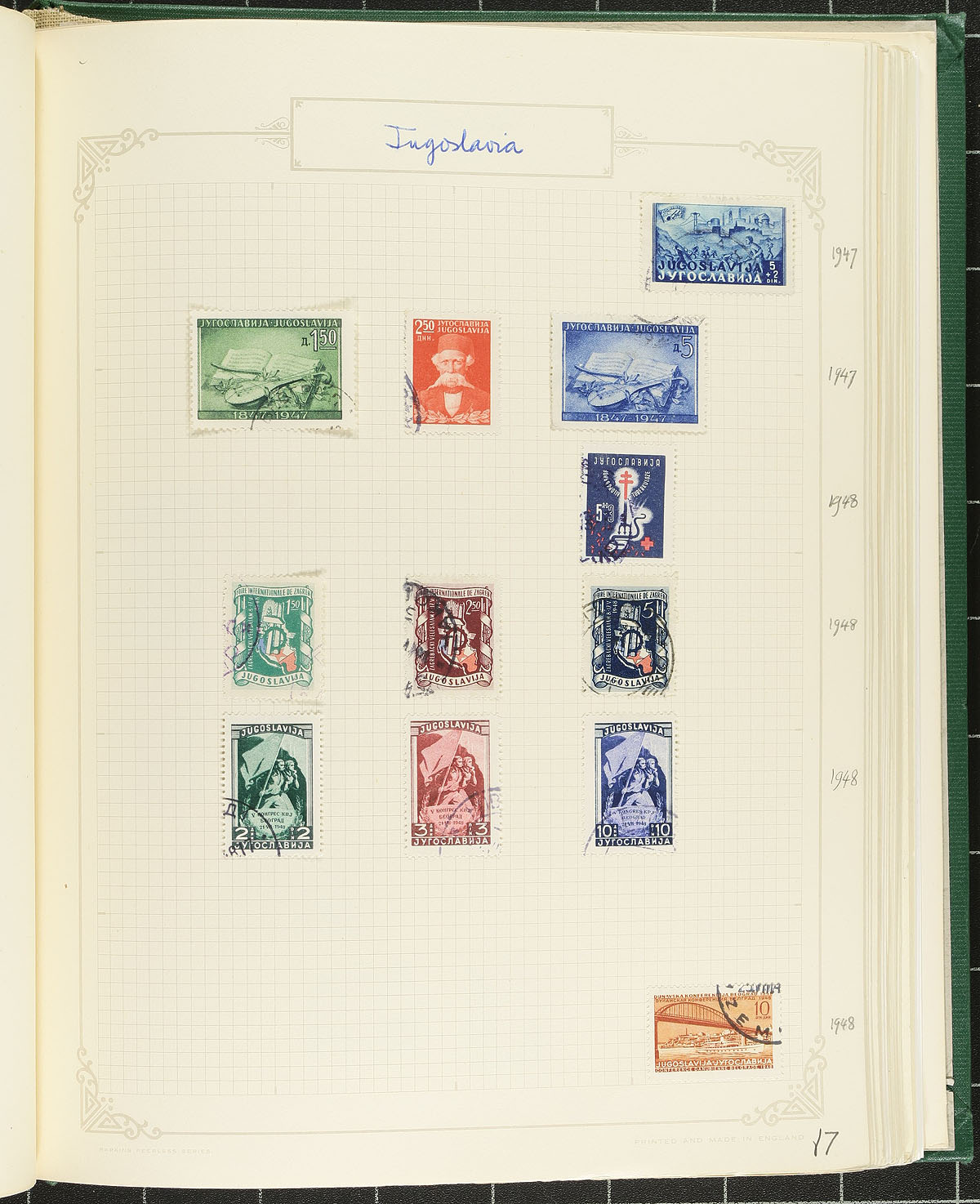 Two mounted collections in a single, green, SG "Tower" springback binder. An extensive used grouping which doesn’t overlap, so everything appears to be different from the post-WWI era up until the late 1970's, with nicer singles throughout. There is fairly decent coverage, with attractive usages and no obvious faults. 2024 Scott US$585.00 =