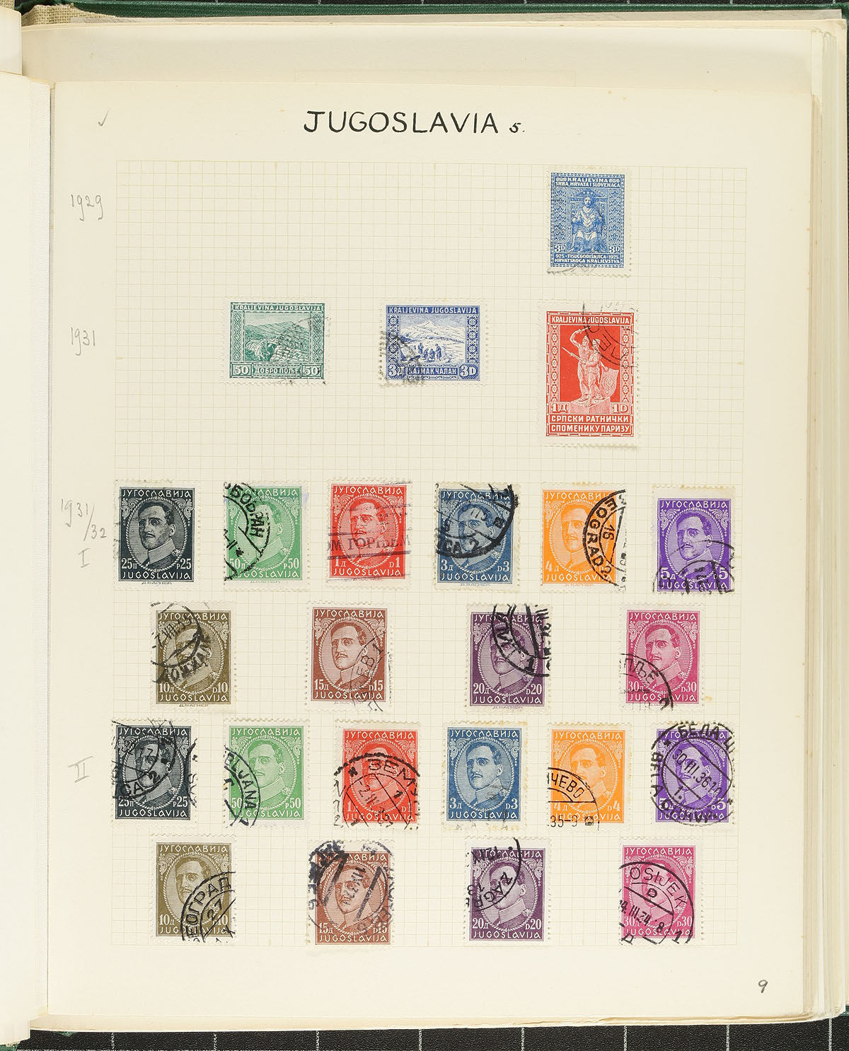 Two mounted collections in a single, green, SG "Tower" springback binder. An extensive used grouping which doesn’t overlap, so everything appears to be different from the post-WWI era up until the late 1970's, with nicer singles throughout. There is fairly decent coverage, with attractive usages and no obvious faults. 2024 Scott US$585.00 =