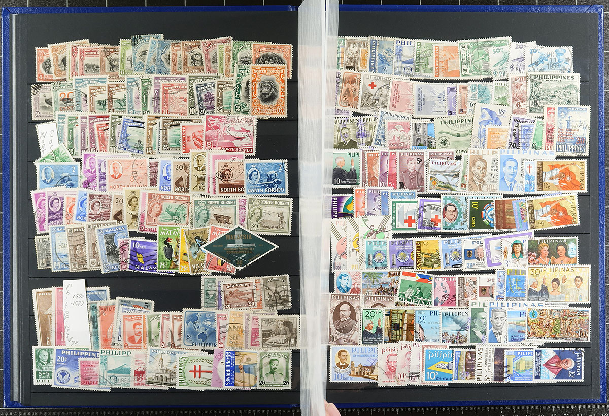 Part A: If you like concentrated, but orderly, lots of stamps which include better items, this consignor’s material is for you. The following used material from the Middle East and Asia is all housed in a blue Lighthouse 16 black-page stockbook (with acetate strips): Hong Kong (including lots of earlier material - catalogues $465.00), Indonesia ($190.00), Indo-China ($23.00), Iraq ($160.00), Mesopotamia-British occupied ($66.00), Israel ($40.00), Iran (extensive and not counting the dubious early material, $1060.00), Cambodia ($57.00), North Borneo ($125.00), Philippines ($78.00). The stamps are mounted in Scott order, with the occasional multiple, otherwise there is very little duplication, with approximately 2500 stamps here, not much after 1980 and none with obvious faults. Perfect for collector or reseller! Owner’s total 2024 Scott US$2264.00 =