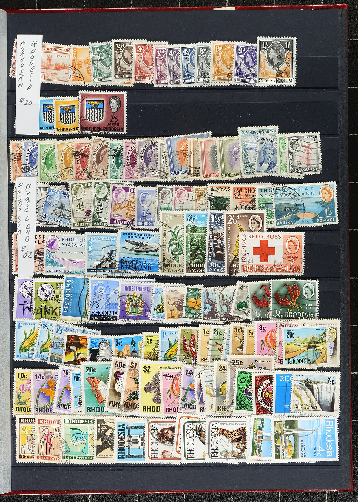 Part B: If you like concentrated, but orderly, lots of stamps which include better items, this consignor’s material is for you. The following used material is mostly from Africa and the Pacific and is all housed in a dark red Lighthouse 16 black-page stockbook (with acetate strips): North Rhodesia (catalogue value US$20.00), Rhodesia and Nyasaland ($62.00), Rhodesia ($36.00), Pitcairn Islands ($26.00), Papua ($103.00), New Guinea ($65.00), Ceylon ($350.00), Liberia ($32.00), Libya ($150.00), Nyasaland ($35.00), Palestine ($130.00), Nigeria ($190.00), Bahrain ($155.00), Papua New Guinea ($140.00), Dubai ($19.00), Guyana ($20.00), Gambia ($40.00), Ghana ($83.00), Cyrenaica ($66.00), Costa Rica ($85.00), Sarawak ($86.00), Seychelles ($113.00), Cook Islands ($50.00), New Hebrides ($25.00), Kenya, Uganda, Tanzania ($32.00), Dominica ($17.00), Trans-Jordan ($70.00) and Congo ($18.00). The stamps are mounted in Scott order, with the occasional multiple, otherwise there is very little duplication, with approximately 2500 stamps here, not much after 1980, and none with obvious faults. Perfect for collector or reseller! Owner’s total 2024 Scott US$2228.00 =