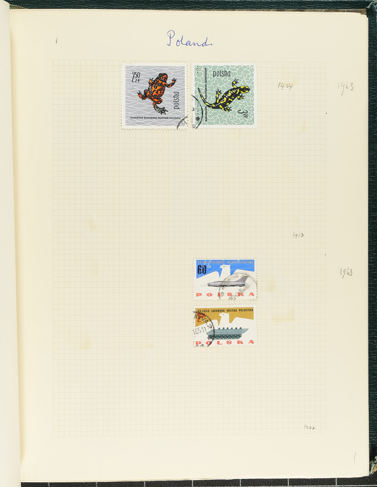 An eclectic mix of mounted collections with used pre-1980 material all on quadrilled pages (some loose, a couple in springback binders, including a nice, red SG "Tower"). Neatly organized and meticulously catalogued by the consignor, with little duplication and few, if any, faulty. In order of catalogue value there is: Vatican City ($260.00), Nepal ($210.00), post-war Poland ($190.00), Iraq ($151.00) and Israel ($70.00). Total 2024 Scott US$881.00 =