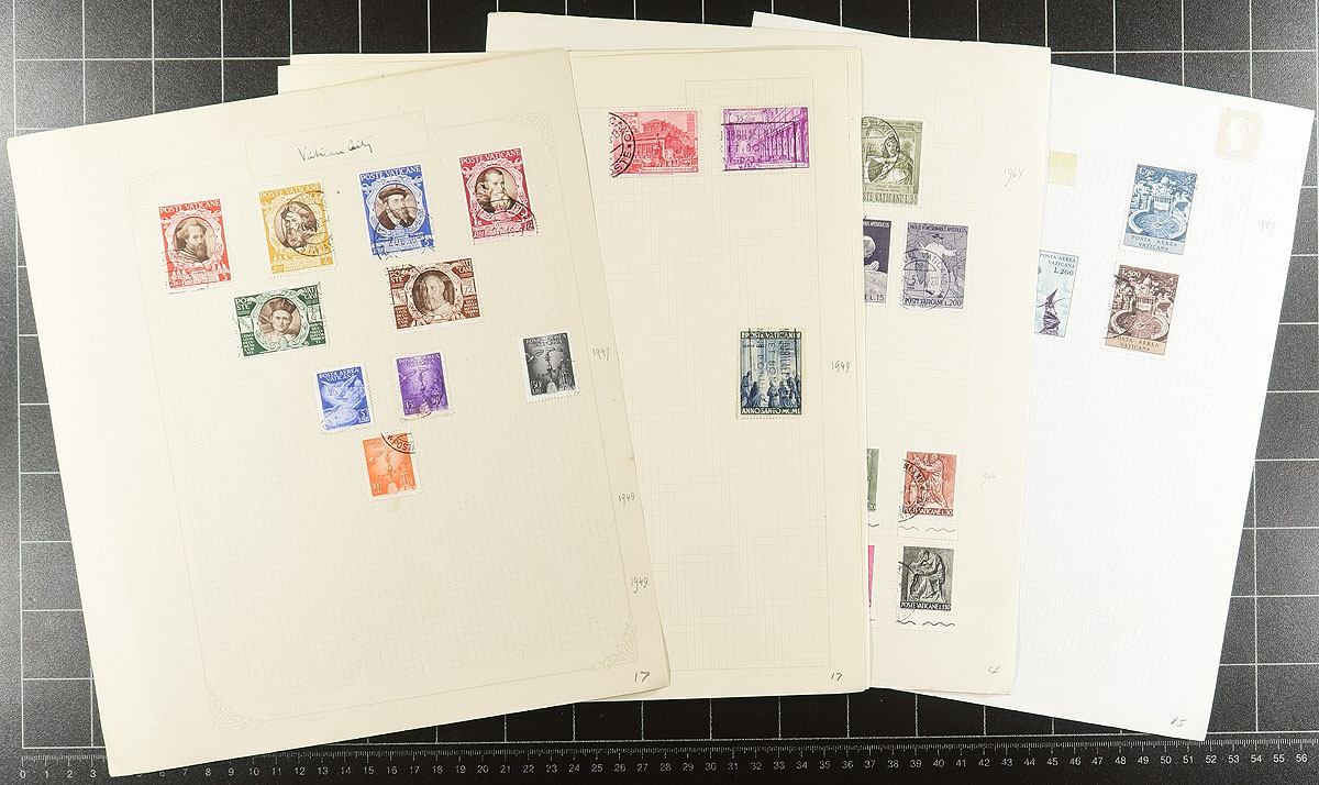 An eclectic mix of mounted collections with used pre-1980 material all on quadrilled pages (some loose, a couple in springback binders, including a nice, red SG "Tower"). Neatly organized and meticulously catalogued by the consignor, with little duplication and few, if any, faulty. In order of catalogue value there is: Vatican City ($260.00), Nepal ($210.00), post-war Poland ($190.00), Iraq ($151.00) and Israel ($70.00). Total 2024 Scott US$881.00 =