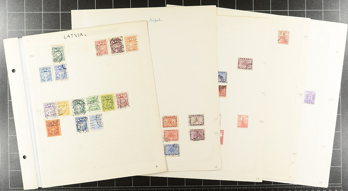An eclectic mix of mounted collections with used pre-1980 material all on quadrilled pages (some loose, a couple in springback binders, including a nice, red SG "Tower"). Neatly organized and meticulously catalogued by the consignor, with little duplication and few, if any, faulty. In order of catalogue value there is: Vatican City ($260.00), Nepal ($210.00), post-war Poland ($190.00), Iraq ($151.00) and Israel ($70.00). Total 2024 Scott US$881.00 =