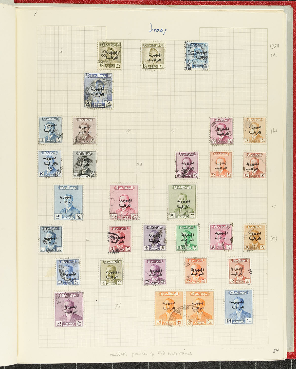 An eclectic mix of mounted collections with used pre-1980 material all on quadrilled pages (some loose, a couple in springback binders, including a nice, red SG "Tower"). Neatly organized and meticulously catalogued by the consignor, with little duplication and few, if any, faulty. In order of catalogue value there is: Vatican City ($260.00), Nepal ($210.00), post-war Poland ($190.00), Iraq ($151.00) and Israel ($70.00). Total 2024 Scott US$881.00 =