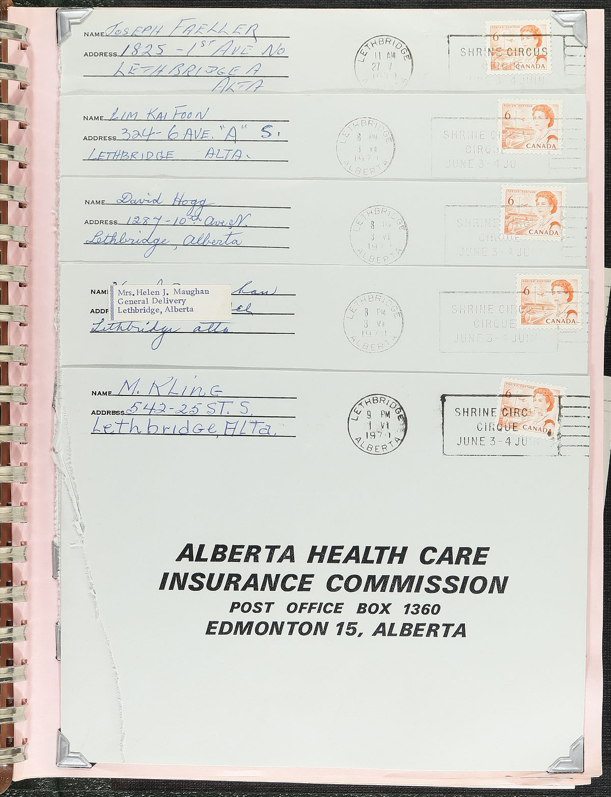 QEII Postal History Part 1. Seven binders filled with commercial covers from 1968-1972 with covers sorted for various themes. The Centennials include a binder each of 6c black and orange with single frankings on fluorescent paper (this material was assembled in the early 1970’s, so there may be a range of different paper types that were not recognized at the time). There is a binder each of the 7c and 8c Centennial, perfect for the "calendar date" collector. One binder has commemoratives, Christmas and Centennials all commercially used on the first day of issue. Fills a U-Haul box, conservatively 1000 covers, mostly used in Alberta. Estimate =