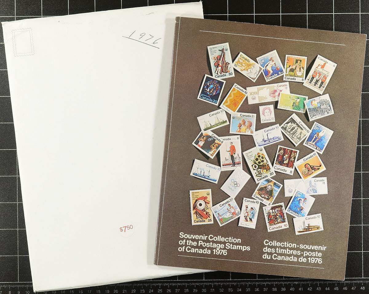 Annual collections 1974-1979, including the good 1974 (without hole punch), 1975 and 1976 in their original packaging. The stamps have been placed in their clear mounts. The stamps are complete and in perfect condition, the folders/booklets are in excellent condition and the packaging has a bit of minor damage (and "1976" has a pencil notation on the front). Under-appreciated in their day, or had the stamps removed and the booklets tossed. 2024 Unitrade =