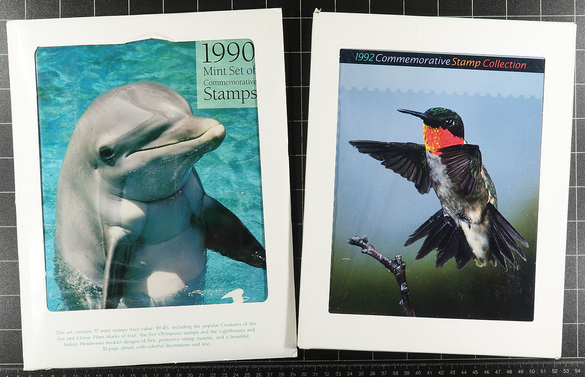 Near complete run of 1973-1999 annual commemorative year sets, missing only 1996, plus a bonus 1986 Ameripex "Presidents" set of 4 sheetlets and all five of the WWII anniversary booklets. Almost all are in their original packaging, with a few having text added in pen on the spine. Most have the stamps in their mounts. The stamps are in excellent condition. Total face value (well less than the original retail price) is US$355.25 =