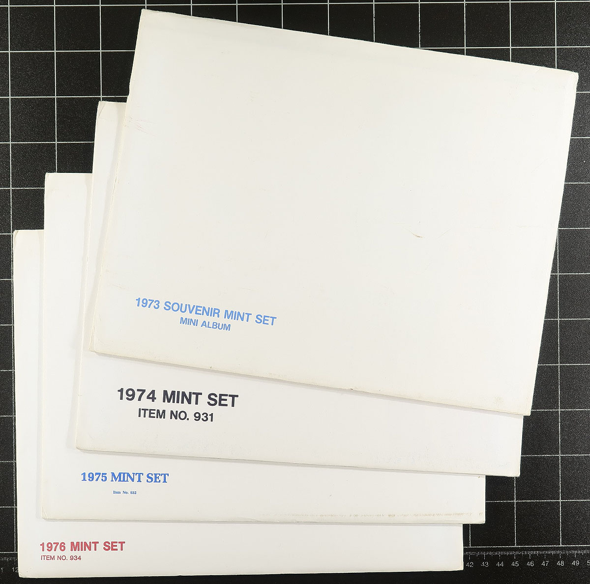 Near complete run of 1973-1999 annual commemorative year sets, missing only 1996, plus a bonus 1986 Ameripex "Presidents" set of 4 sheetlets and all five of the WWII anniversary booklets. Almost all are in their original packaging, with a few having text added in pen on the spine. Most have the stamps in their mounts. The stamps are in excellent condition. Total face value (well less than the original retail price) is US$355.25 =
