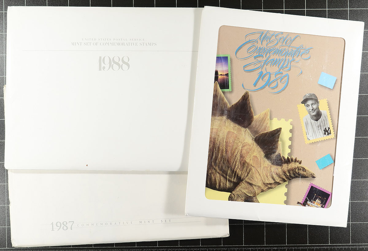 Near complete run of 1973-1999 annual commemorative year sets, missing only 1996, plus a bonus 1986 Ameripex "Presidents" set of 4 sheetlets and all five of the WWII anniversary booklets. Almost all are in their original packaging, with a few having text added in pen on the spine. Most have the stamps in their mounts. The stamps are in excellent condition. Total face value (well less than the original retail price) is US$355.25 =