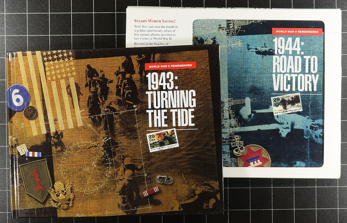 Near complete run of 1973-1999 annual commemorative year sets, missing only 1996, plus a bonus 1986 Ameripex "Presidents" set of 4 sheetlets and all five of the WWII anniversary booklets. Almost all are in their original packaging, with a few having text added in pen on the spine. Most have the stamps in their mounts. The stamps are in excellent condition. Total face value (well less than the original retail price) is US$355.25 =