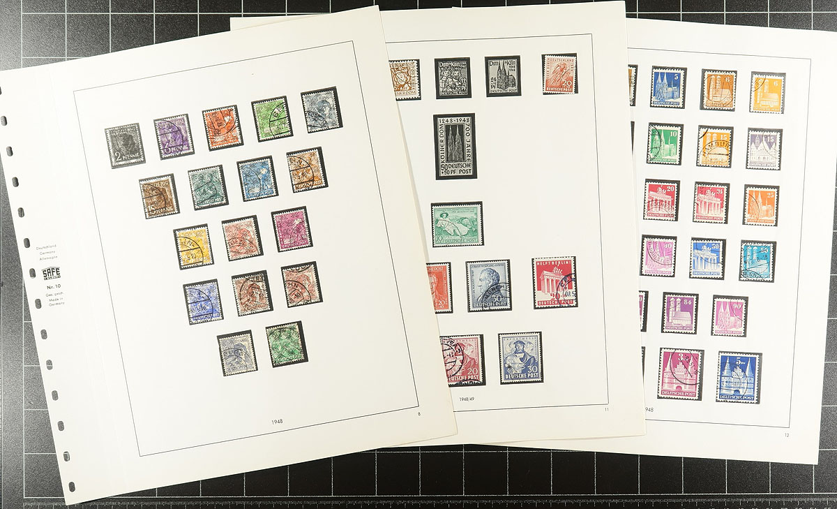 An attractive collection of used post-WWII Germany up to the creation of the German Federation in 1949. Includes some Allied Military Government issues, overprints on definitives, the "Castles" set and most of the secondary perforation changes, plus most of the semi-postals (this being the highlight of the lot). All housed on older 14-ring SAFE hingeless pages (reference NR.10). Difficult to find used examples of many stamps from this chaotic period of history, and only one stamp is obviously faulty and not counted in the total catalogue value. 2024 Scott US$436.45 =