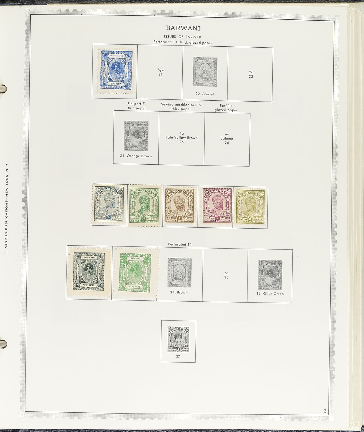 We don’t often see collections with this many Convention and Feudatory states represented, and this lot is a collector’s dream with a wide breadth of material, mixed in with some dubious items to keep you on your toes. From 1 stamp to 50 from each state, such as: Alwar, Barwini, Bhopal, Bundi, Bussahir, Chamba, Charkari, Cochin, Dhar, Duttia, Faridkot, Gwalior, Hyderabad, Idar, Indore, Jaipur, Jammu and Kashmir, Jasdan, Jhind, Kishangarh, Morvi, Nabha, Nandgaon, Orchha, Pataila, Saurashtra, SIrmoor, Travancore, Travancore-Cochin, Wadhwan. Mint, (mostly) used, regular issues, lots of officials all housed on Minkus pages in an old Minkus binder (back cover is quite worn). A few hundred stamps here to keep you busy for a while. Estimate =