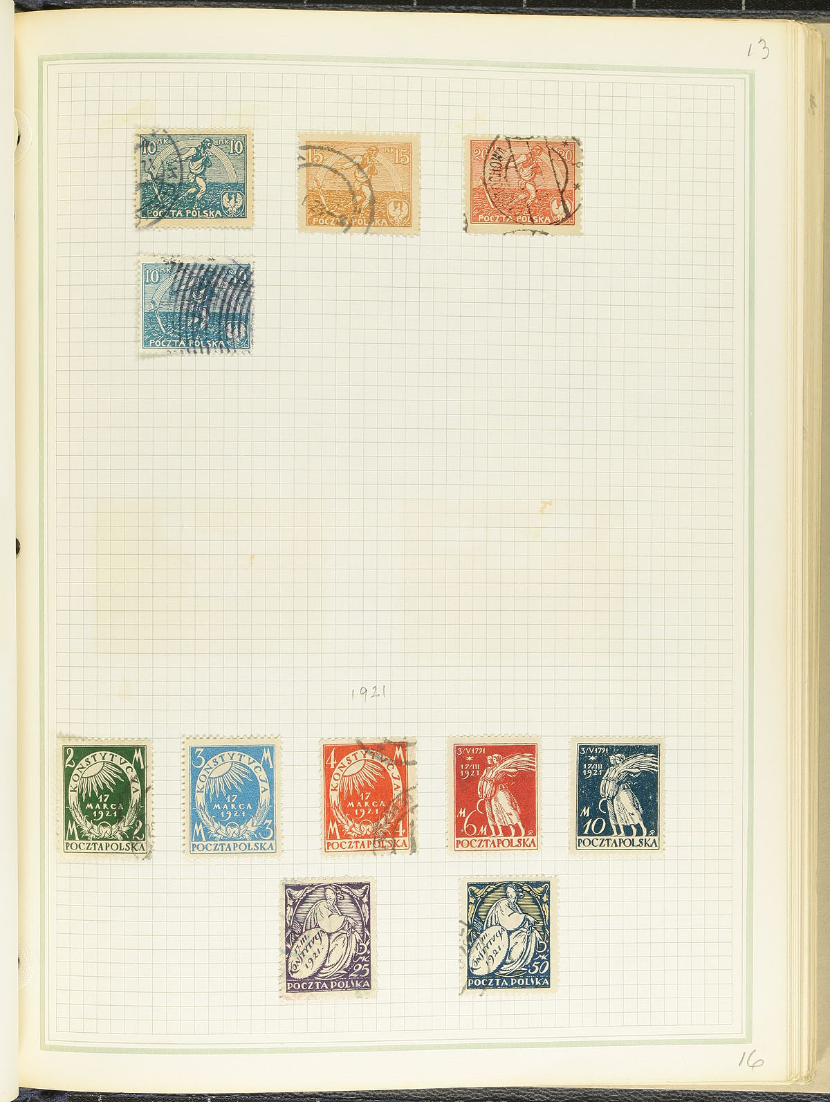 Comprehensive mounted collection in two binders with over 60 years of Polish philately. Mostly chronologically mounted with German occupation issues from WWI, a good range of inter-war issues, including a few souvenir sheets (cat up to $15.00 each). WWII includes "General Government" issues followed by a very complete offering into the early 1980’s, with lots of topical and souvenir sheets and plenty of material from the "back of the book". More used than mint. The previous owner counted about 3000 different stamps. The Minkus binder is well worn, but has done a good protecting these stamps over the decades. Estimate =