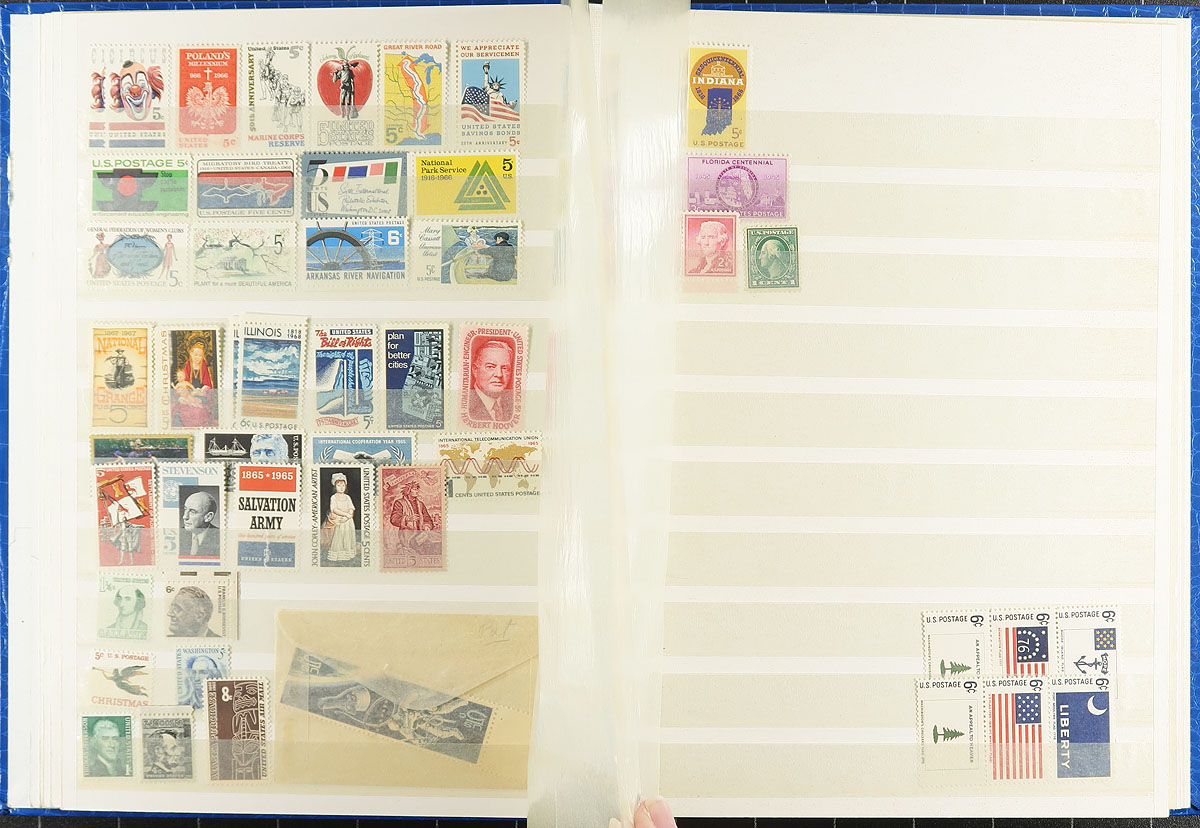 A bankers box packed to its limit with four albums, a few small stockbooks, loose pages, a few presentation folders. More used than mint, with strength in the 20th century up to about 1985. Some interesting "back of the book", lots of revenues, some precancels and perfins. Even noted a trio of China overprints and a few Hawaiian stamps. Hours of entertainment here, and the distinct possibility of finding diamonds in the rough. Estimate =