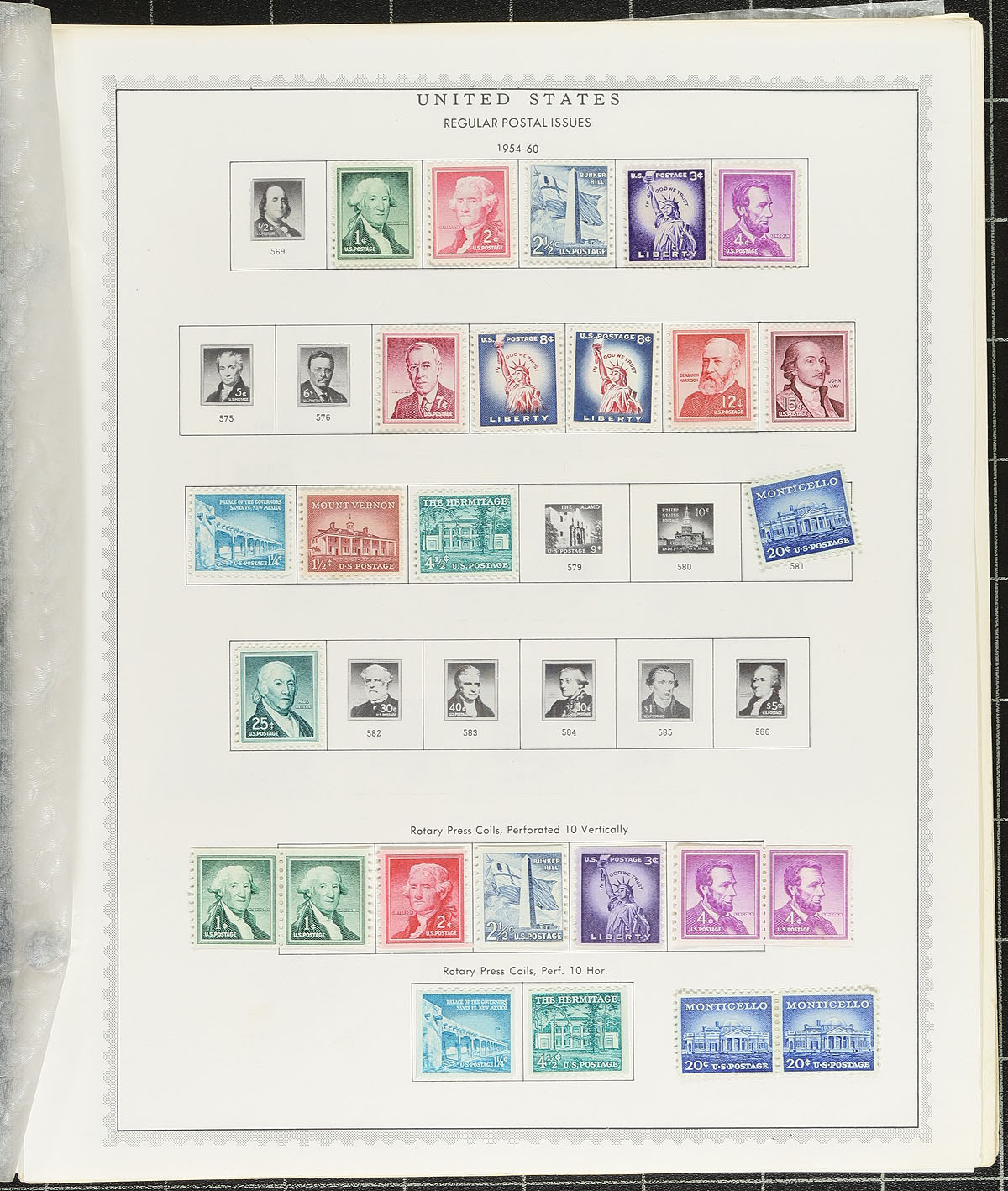 A bankers box packed to its limit with four albums, a few small stockbooks, loose pages, a few presentation folders. More used than mint, with strength in the 20th century up to about 1985. Some interesting "back of the book", lots of revenues, some precancels and perfins. Even noted a trio of China overprints and a few Hawaiian stamps. Hours of entertainment here, and the distinct possibility of finding diamonds in the rough. Estimate =