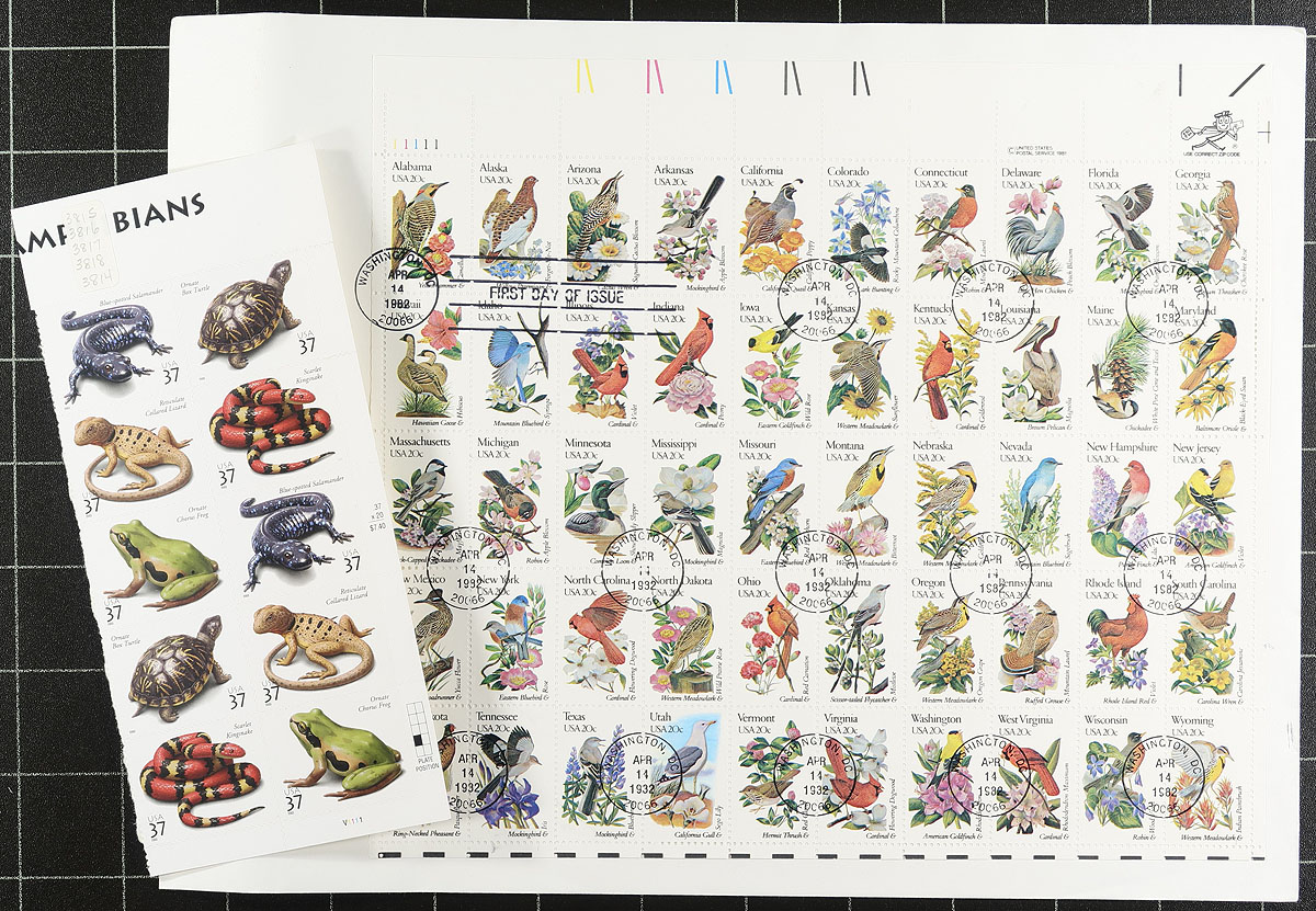 A bankers box packed to its limit with four albums, a few small stockbooks, loose pages, a few presentation folders. More used than mint, with strength in the 20th century up to about 1985. Some interesting "back of the book", lots of revenues, some precancels and perfins. Even noted a trio of China overprints and a few Hawaiian stamps. Hours of entertainment here, and the distinct possibility of finding diamonds in the rough. Estimate =