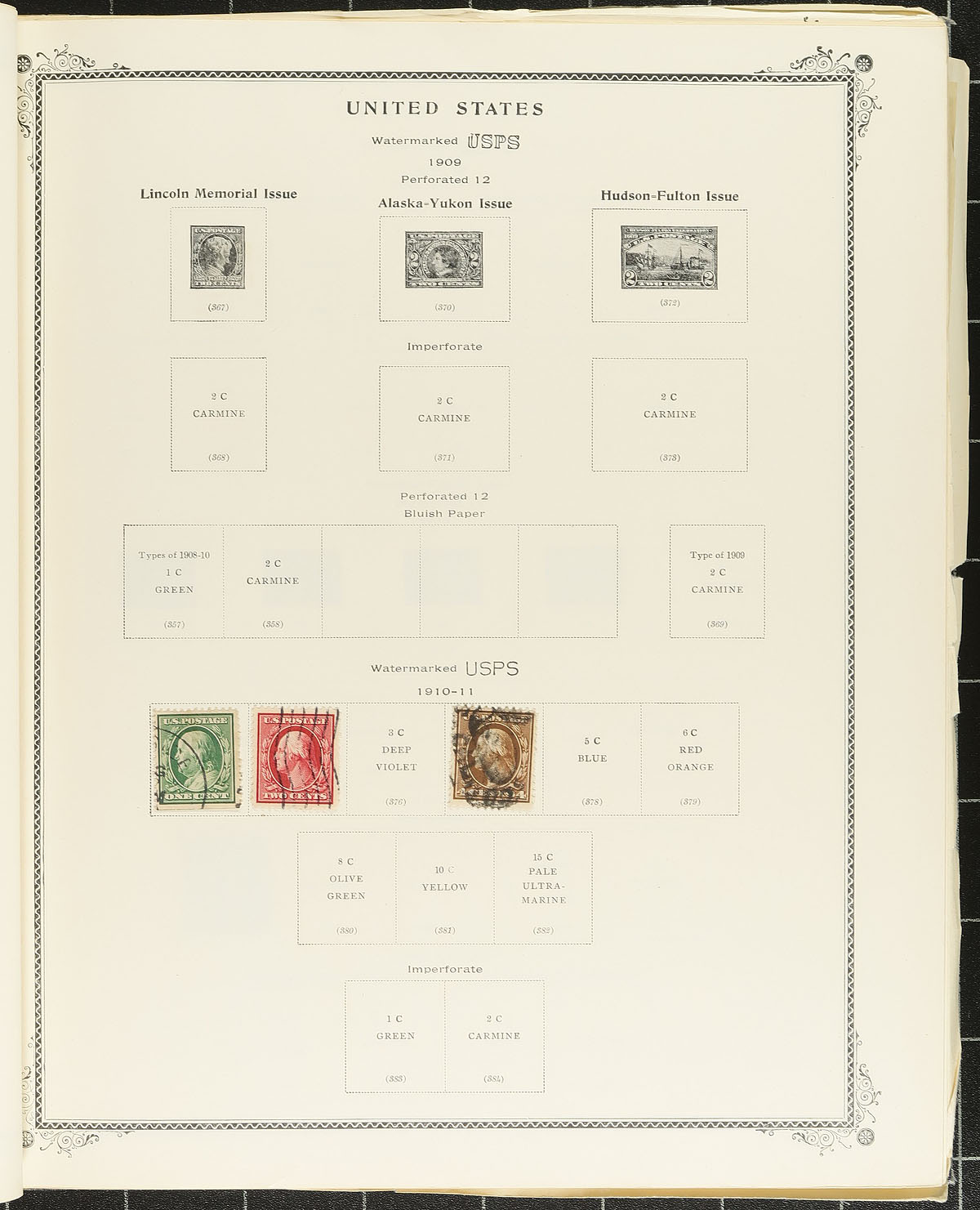 A bankers box packed to its limit with four albums, a few small stockbooks, loose pages, a few presentation folders. More used than mint, with strength in the 20th century up to about 1985. Some interesting "back of the book", lots of revenues, some precancels and perfins. Even noted a trio of China overprints and a few Hawaiian stamps. Hours of entertainment here, and the distinct possibility of finding diamonds in the rough. Estimate =