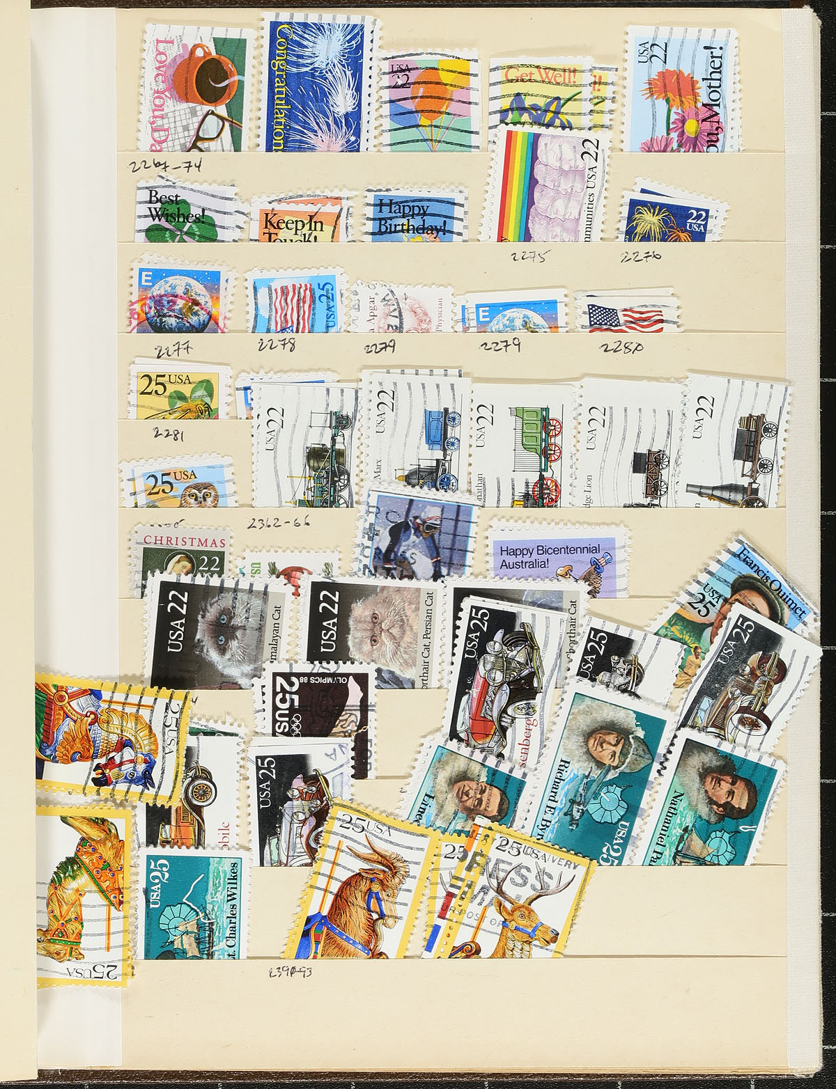 A bankers box packed to its limit with four albums, a few small stockbooks, loose pages, a few presentation folders. More used than mint, with strength in the 20th century up to about 1985. Some interesting "back of the book", lots of revenues, some precancels and perfins. Even noted a trio of China overprints and a few Hawaiian stamps. Hours of entertainment here, and the distinct possibility of finding diamonds in the rough. Estimate =