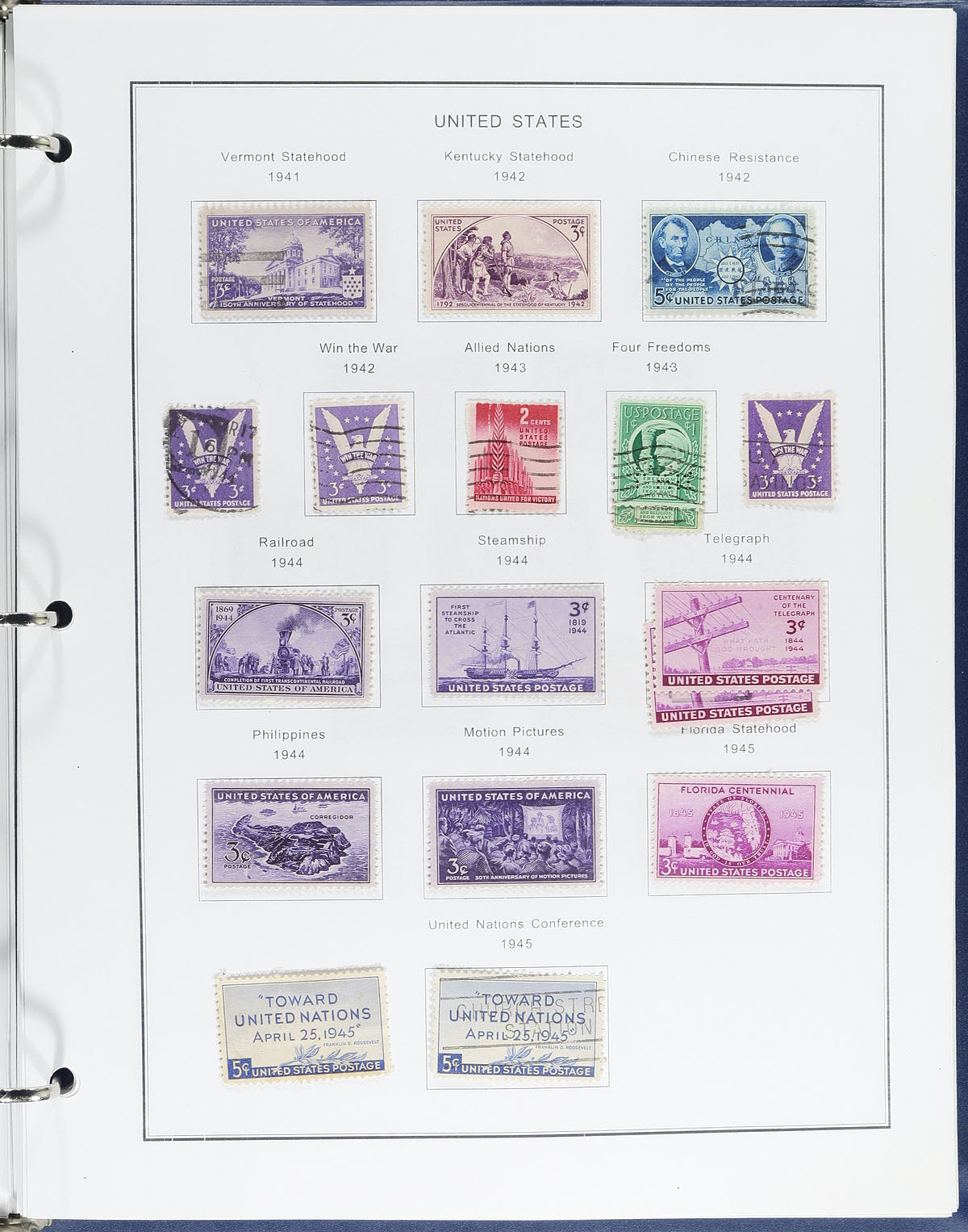 A bankers box packed to its limit with four albums, a few small stockbooks, loose pages, a few presentation folders. More used than mint, with strength in the 20th century up to about 1985. Some interesting "back of the book", lots of revenues, some precancels and perfins. Even noted a trio of China overprints and a few Hawaiian stamps. Hours of entertainment here, and the distinct possibility of finding diamonds in the rough. Estimate =