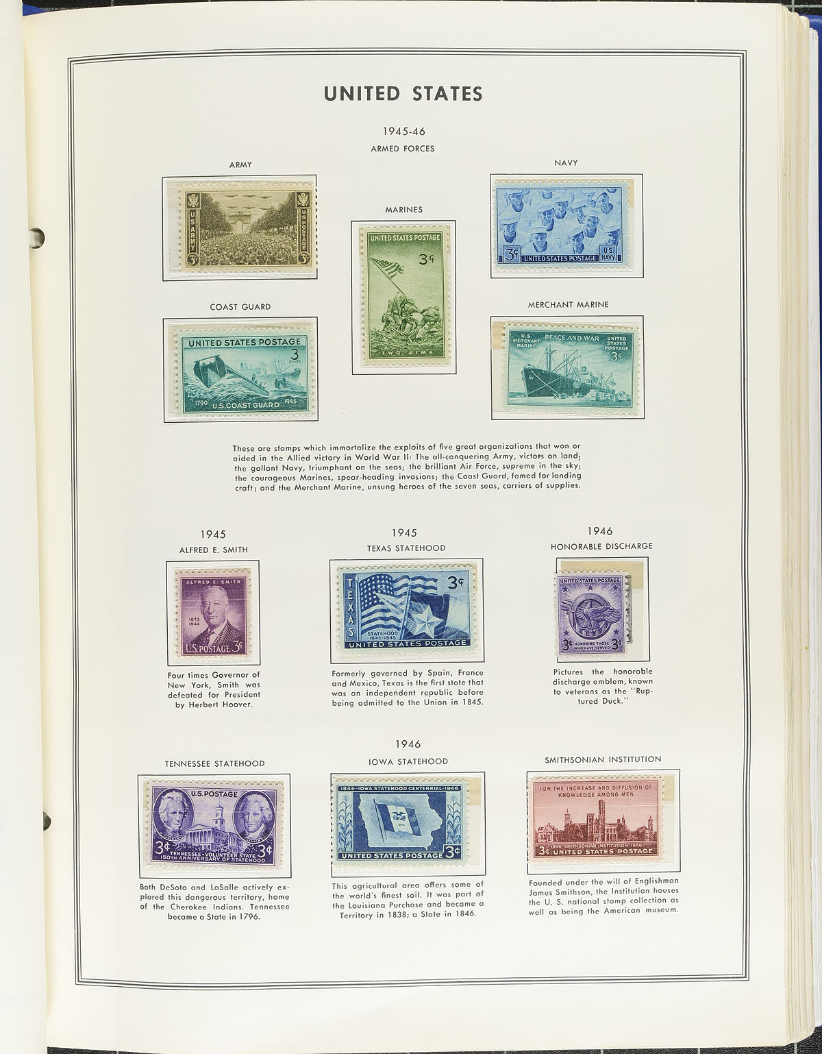 A bankers box packed to its limit with four albums, a few small stockbooks, loose pages, a few presentation folders. More used than mint, with strength in the 20th century up to about 1985. Some interesting "back of the book", lots of revenues, some precancels and perfins. Even noted a trio of China overprints and a few Hawaiian stamps. Hours of entertainment here, and the distinct possibility of finding diamonds in the rough. Estimate =