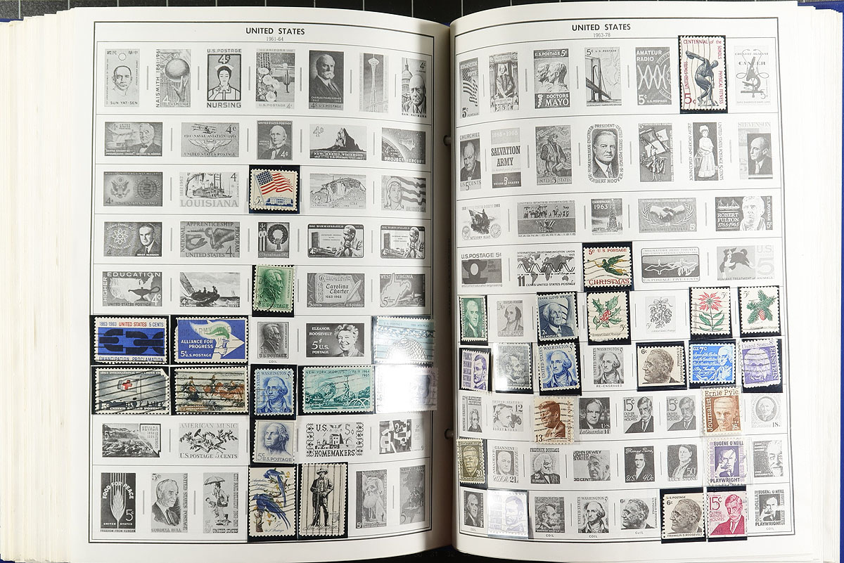 Balance of a consignment with four albums, two stockbooks and a few loose pages. The albums include a Harris Statesman Deluxe and an "Olympian" album, each running from "A" to "Z", absolutely packed with stamps from everywhere, including a nice section of China in one. The two red springback albums includes a "Simplex" with a flight topical collection with some birds and lots of airplanes and dirigibles and an older album with black pages and a topical rich assortment of worldwide. There is an Alligator brand stockbook in light green and a lightly used red Uni-Safe stockbook. Thousands upon thousands of stamps here. Estimate =