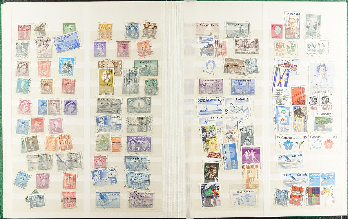 Balance of a consignment with four albums, two stockbooks and a few loose pages. The albums include a Harris Statesman Deluxe and an "Olympian" album, each running from "A" to "Z", absolutely packed with stamps from everywhere, including a nice section of China in one. The two red springback albums includes a "Simplex" with a flight topical collection with some birds and lots of airplanes and dirigibles and an older album with black pages and a topical rich assortment of worldwide. There is an Alligator brand stockbook in light green and a lightly used red Uni-Safe stockbook. Thousands upon thousands of stamps here. Estimate =