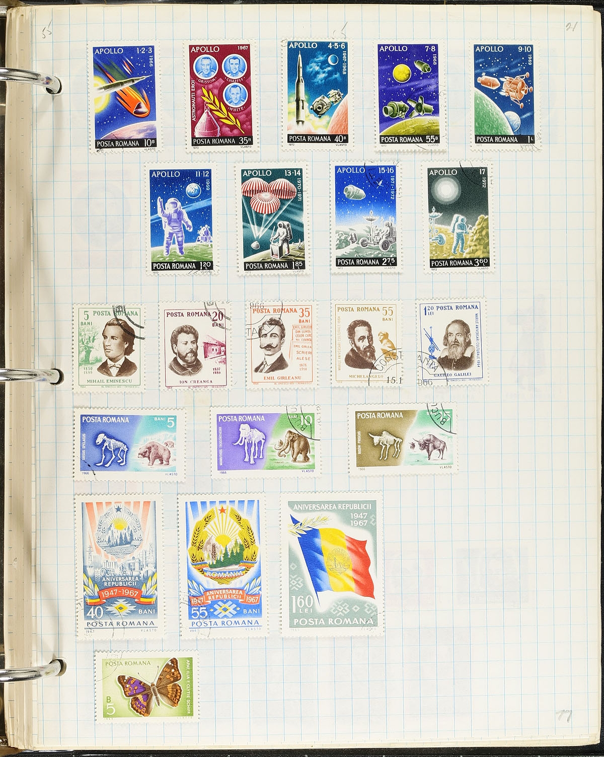 Bankers box containing a mixed bag of albums and a couple of "pocket" stockbooks. Most are old-time collections with not much past 1980. Includes a couple of three-ring binders, one is Europe heavy, the other is "A" to "G" countries. Albums include a Canada album with pages to 1975, Ambassador and Statesman albums with worldwide collections. There are some loose album and stockbook pages and a couple baby-blue coloured Filex stockbooks. Thousands of stamps here, more used than mint and offered as received. Estimate =