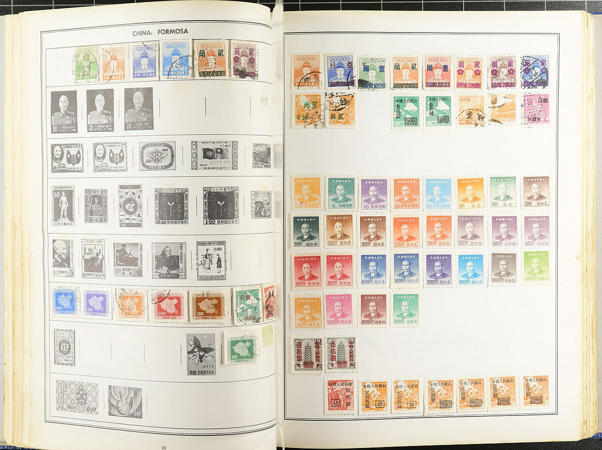 Bankers box containing a mixed bag of albums and a couple of "pocket" stockbooks. Most are old-time collections with not much past 1980. Includes a couple of three-ring binders, one is Europe heavy, the other is "A" to "G" countries. Albums include a Canada album with pages to 1975, Ambassador and Statesman albums with worldwide collections. There are some loose album and stockbook pages and a couple baby-blue coloured Filex stockbooks. Thousands of stamps here, more used than mint and offered as received. Estimate =