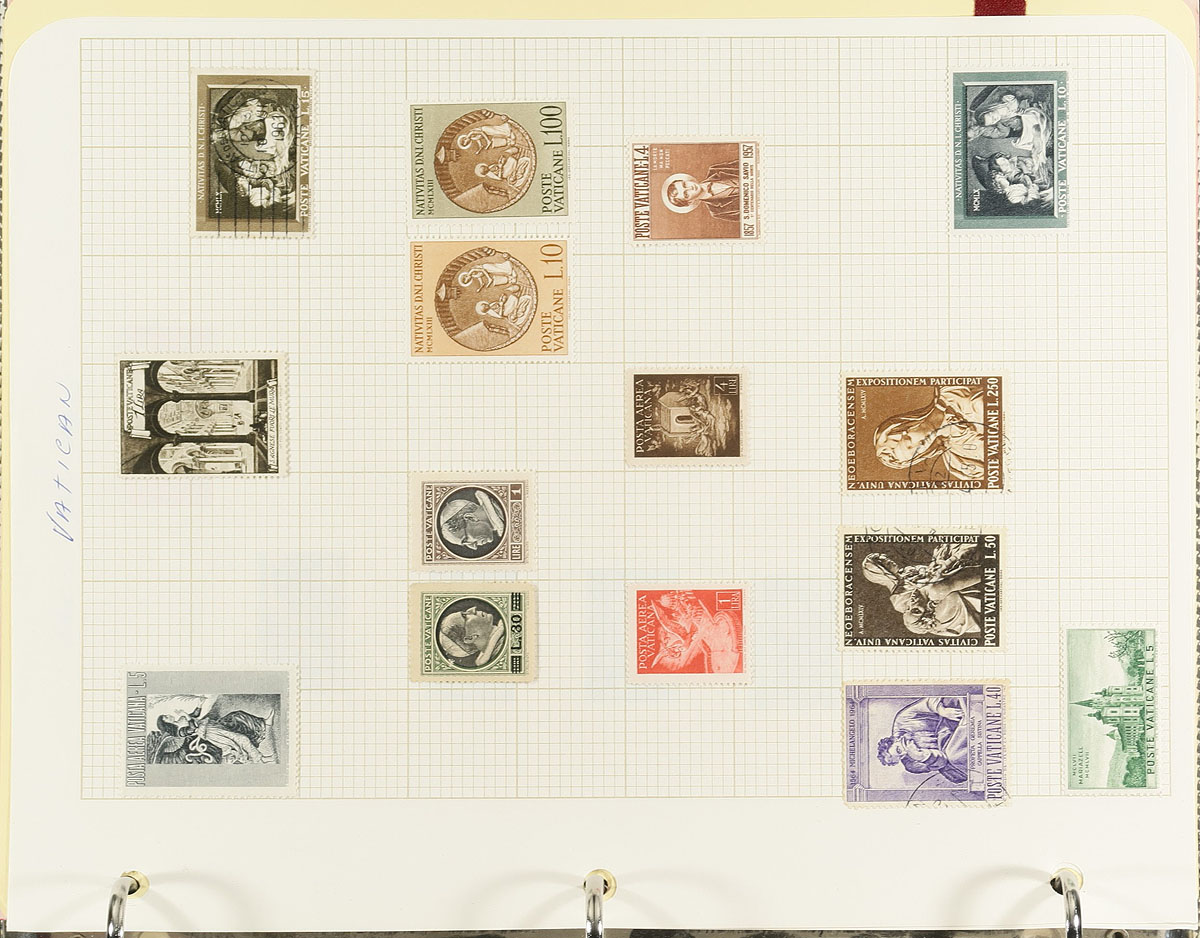 Europe-strong group of old collections filling a bankers box. The best is a springback album with an assortment of pre-1950 Europe (and a page of Hawaii!), including a respectable amount of 19th century material. There is potential here, but the condition is mixed. There is a wounded "Standard" and an older "Ambassador" album with worldwide collections. Noted a binder with "L" to "Z" countries and a handful of looseleaf pages with more Europe (especially Belgium). More used than mint, not much past 1990. Thousands of stamps, perfect for the collector with hunter/gathering tendencies. Estimate =