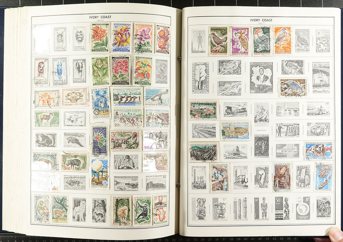 Europe-strong group of old collections filling a bankers box. The best is a springback album with an assortment of pre-1950 Europe (and a page of Hawaii!), including a respectable amount of 19th century material. There is potential here, but the condition is mixed. There is a wounded "Standard" and an older "Ambassador" album with worldwide collections. Noted a binder with "L" to "Z" countries and a handful of looseleaf pages with more Europe (especially Belgium). More used than mint, not much past 1990. Thousands of stamps, perfect for the collector with hunter/gathering tendencies. Estimate =