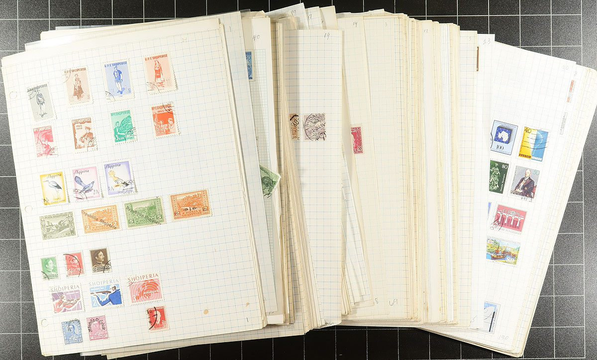 Europe-strong group of old collections filling a bankers box. The best is a springback album with an assortment of pre-1950 Europe (and a page of Hawaii!), including a respectable amount of 19th century material. There is potential here, but the condition is mixed. There is a wounded "Standard" and an older "Ambassador" album with worldwide collections. Noted a binder with "L" to "Z" countries and a handful of looseleaf pages with more Europe (especially Belgium). More used than mint, not much past 1990. Thousands of stamps, perfect for the collector with hunter/gathering tendencies. Estimate =