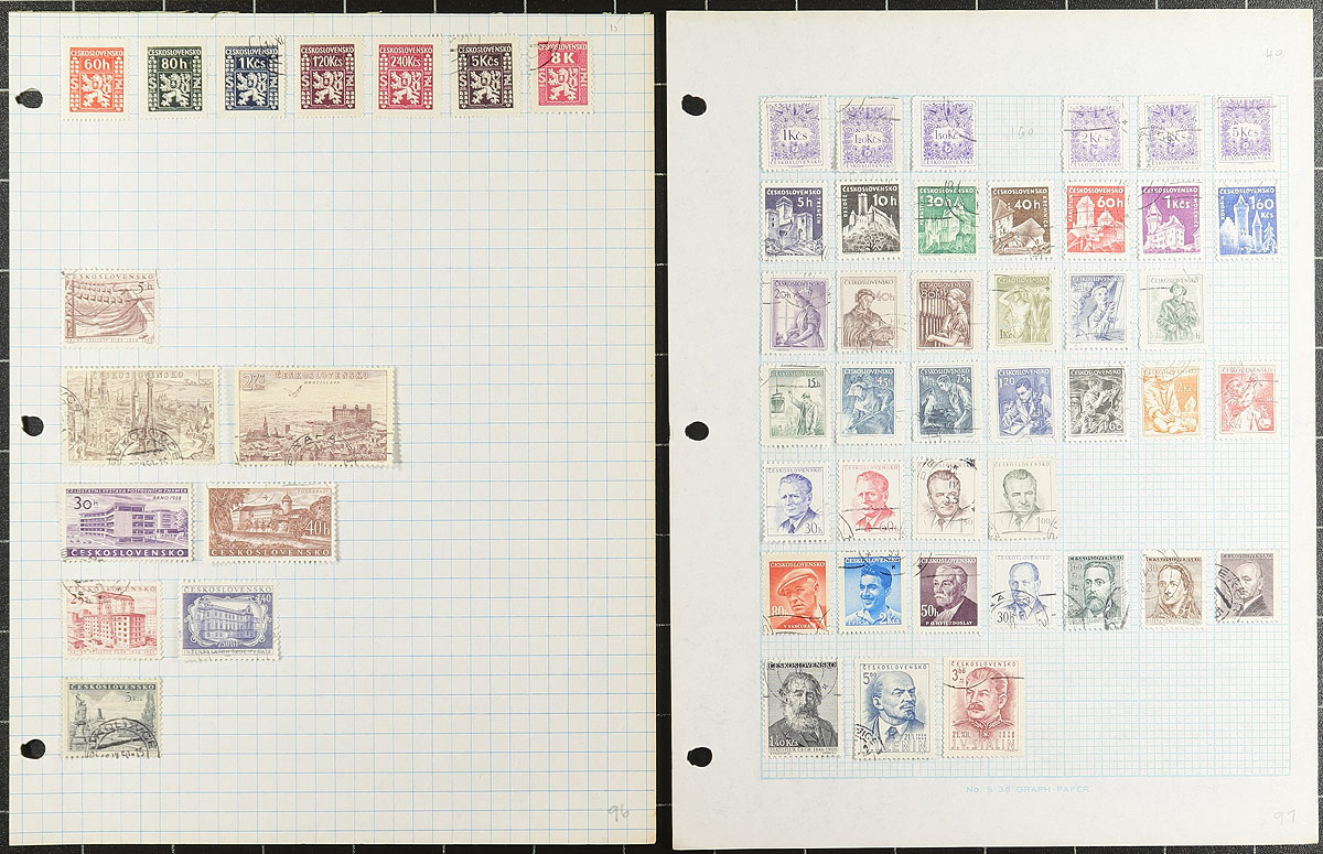 Europe-strong group of old collections filling a bankers box. The best is a springback album with an assortment of pre-1950 Europe (and a page of Hawaii!), including a respectable amount of 19th century material. There is potential here, but the condition is mixed. There is a wounded "Standard" and an older "Ambassador" album with worldwide collections. Noted a binder with "L" to "Z" countries and a handful of looseleaf pages with more Europe (especially Belgium). More used than mint, not much past 1990. Thousands of stamps, perfect for the collector with hunter/gathering tendencies. Estimate =