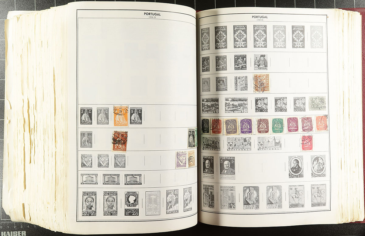 Europe-strong group of old collections filling a bankers box. The best is a springback album with an assortment of pre-1950 Europe (and a page of Hawaii!), including a respectable amount of 19th century material. There is potential here, but the condition is mixed. There is a wounded "Standard" and an older "Ambassador" album with worldwide collections. Noted a binder with "L" to "Z" countries and a handful of looseleaf pages with more Europe (especially Belgium). More used than mint, not much past 1990. Thousands of stamps, perfect for the collector with hunter/gathering tendencies. Estimate =