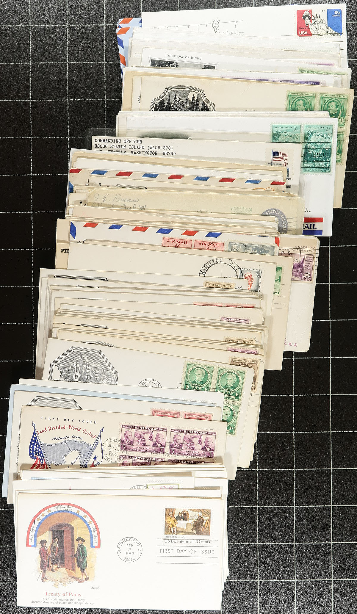 First Day Cover accumulation from the 1930’s (Byrd souvenir sheet) up to the late 1980’s (noted the $9.35 Eagle from 1983). Housed in three FDC albums, a couple of presentation folders and a couple of big handfuls of loose covers. Almost all are cacheted, includes a few commemorative or first flights. Strength is in Fleetwood, with a bit of Artmaster and National Wildlife Federation cachets, plus a number of various private cachet makers from the 1930’s to 1940’s issues. The condition is generally decent. About 500, with only light duplication. Estimate =