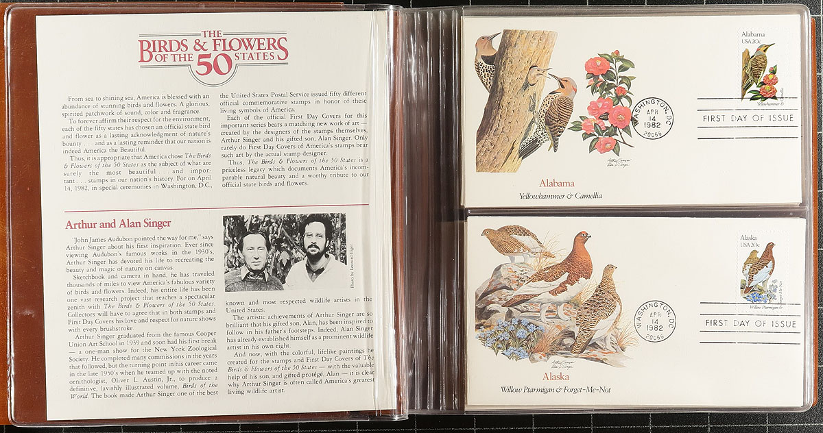 First Day Cover accumulation from the 1930’s (Byrd souvenir sheet) up to the late 1980’s (noted the $9.35 Eagle from 1983). Housed in three FDC albums, a couple of presentation folders and a couple of big handfuls of loose covers. Almost all are cacheted, includes a few commemorative or first flights. Strength is in Fleetwood, with a bit of Artmaster and National Wildlife Federation cachets, plus a number of various private cachet makers from the 1930’s to 1940’s issues. The condition is generally decent. About 500, with only light duplication. Estimate =