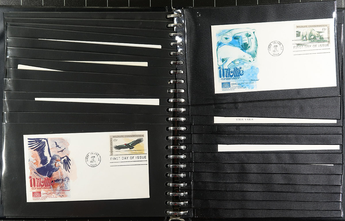 First Day Cover accumulation from the 1930’s (Byrd souvenir sheet) up to the late 1980’s (noted the $9.35 Eagle from 1983). Housed in three FDC albums, a couple of presentation folders and a couple of big handfuls of loose covers. Almost all are cacheted, includes a few commemorative or first flights. Strength is in Fleetwood, with a bit of Artmaster and National Wildlife Federation cachets, plus a number of various private cachet makers from the 1930’s to 1940’s issues. The condition is generally decent. About 500, with only light duplication. Estimate =