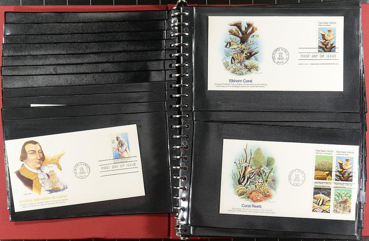 First Day Cover accumulation from the 1930’s (Byrd souvenir sheet) up to the late 1980’s (noted the $9.35 Eagle from 1983). Housed in three FDC albums, a couple of presentation folders and a couple of big handfuls of loose covers. Almost all are cacheted, includes a few commemorative or first flights. Strength is in Fleetwood, with a bit of Artmaster and National Wildlife Federation cachets, plus a number of various private cachet makers from the 1930’s to 1940’s issues. The condition is generally decent. About 500, with only light duplication. Estimate =