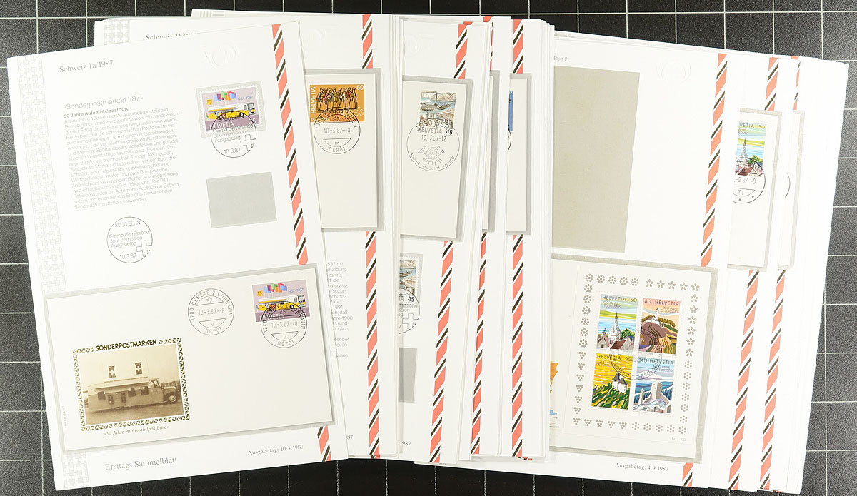 Semi-sorted collection (mainly Europe) of 657 covers and postcards in a large shoe box. Lot includes 45x Norway 1950’s advertising meters, 27x Switzerland 1987 PhilSwiss cachet FDC’s (complete for 1987), 53x Germany DDR 1950’s - 1980’s FDC, 211x Austria 1950’s to 1980’s FDC (many with illustrated cancels), 175 x 1980’s / 1990’s Germany illustrated cancels, 44x Switzerland illustrated slogan cancels, 29x Liechtenstein 1980’s FDCs / covers, 73x misc worldwide cover with many illustrated postage meters. The clear emphasis of this collection is illustrated cancels and advertising meter mail. Estimate =