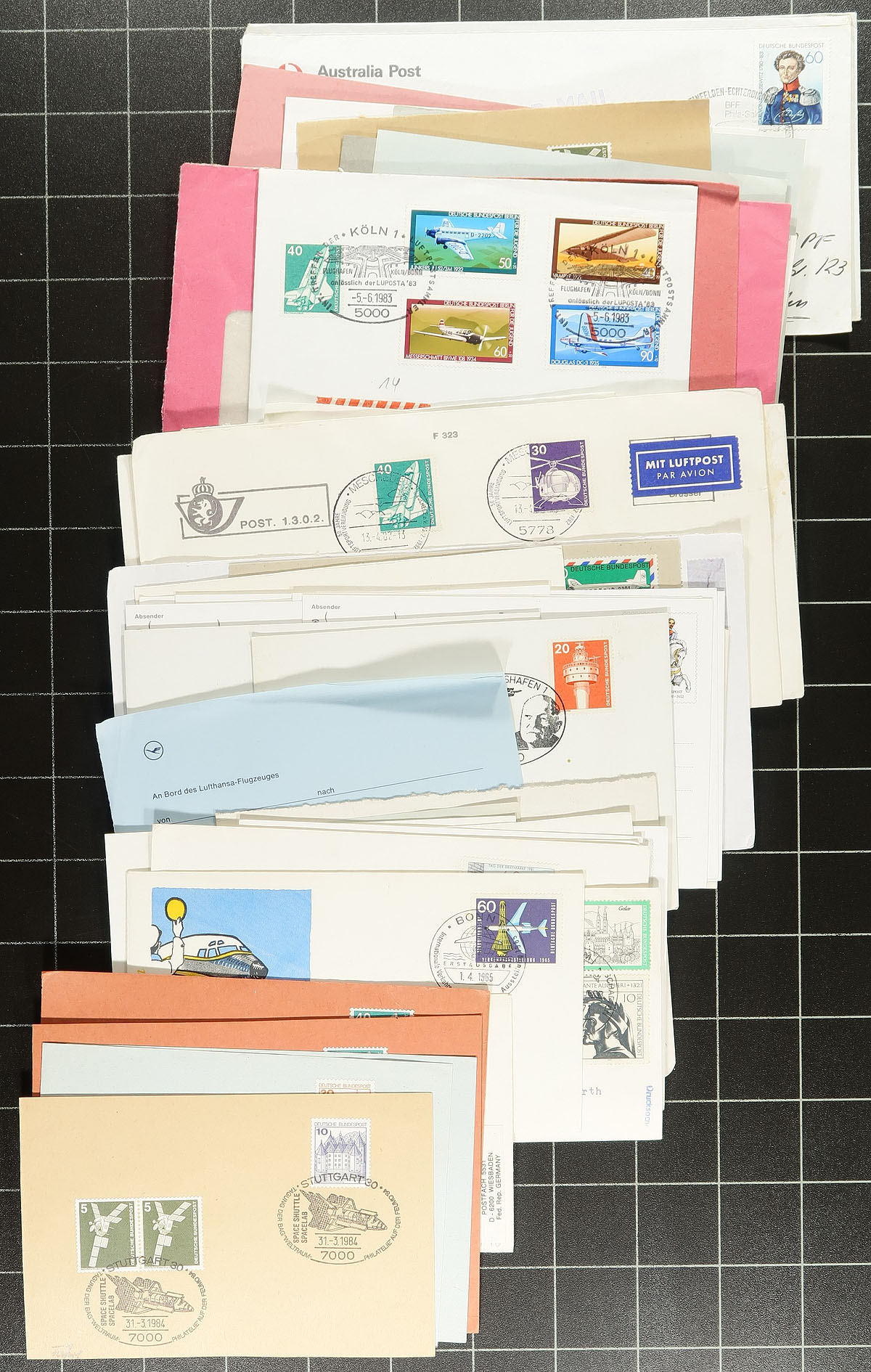 Semi-sorted collection (mainly Europe) of 657 covers and postcards in a large shoe box. Lot includes 45x Norway 1950’s advertising meters, 27x Switzerland 1987 PhilSwiss cachet FDC’s (complete for 1987), 53x Germany DDR 1950’s - 1980’s FDC, 211x Austria 1950’s to 1980’s FDC (many with illustrated cancels), 175 x 1980’s / 1990’s Germany illustrated cancels, 44x Switzerland illustrated slogan cancels, 29x Liechtenstein 1980’s FDCs / covers, 73x misc worldwide cover with many illustrated postage meters. The clear emphasis of this collection is illustrated cancels and advertising meter mail. Estimate =