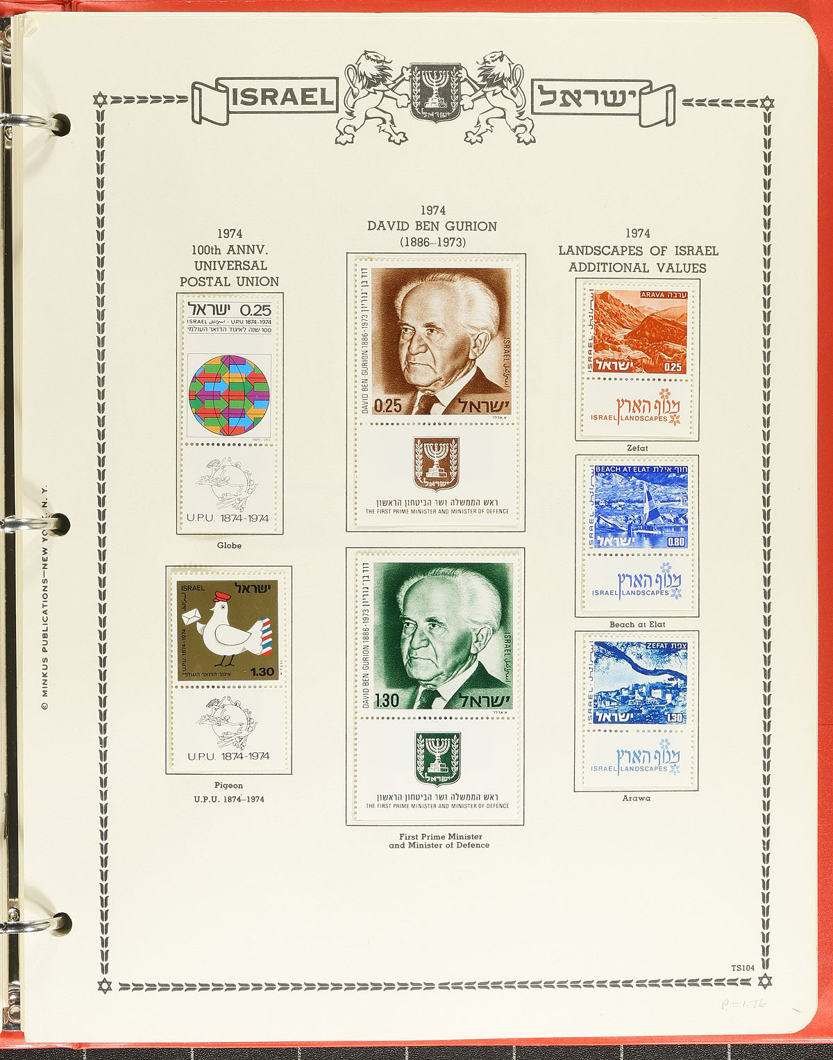 Mint accumulation with two binders with a fairly complete group from 1974-1989 on "Novus" pages, with a White Ace album overlapping the late 1980’s, along with some loose glassines with "new issues" from the 1980’s. Between the three, there are very few holes. All with tabs and a number of souvenir sheets. There is a 1996 mint folder/year set with an extra insert, plus a bit of extra used material. Estimate =